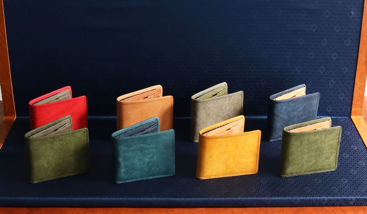 20周年記念の限定品は、二つ折り財布、ラウンドファスナー長財布、カードケースの3種類を各店舗ごとにセレクトしたバイカラーのアイテム。