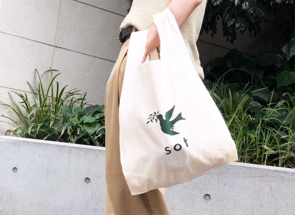 オープンを記念いたしまして、11,000円(税込)以上お買い上げのお客様にsotのオリジナルエコバッグをプレゼントいたします。