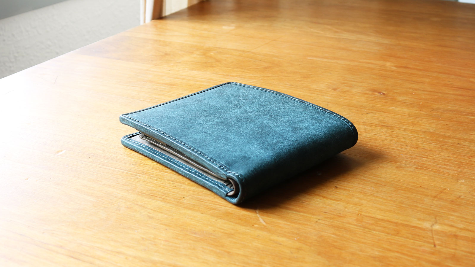 良質なイタリアンレザーならではの経年変化を感じられる二つ折り財布。