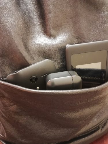 外のポケットには埋もれやすく、比較的小さいサブの携帯、充電器、ポケットwifiを入れています。