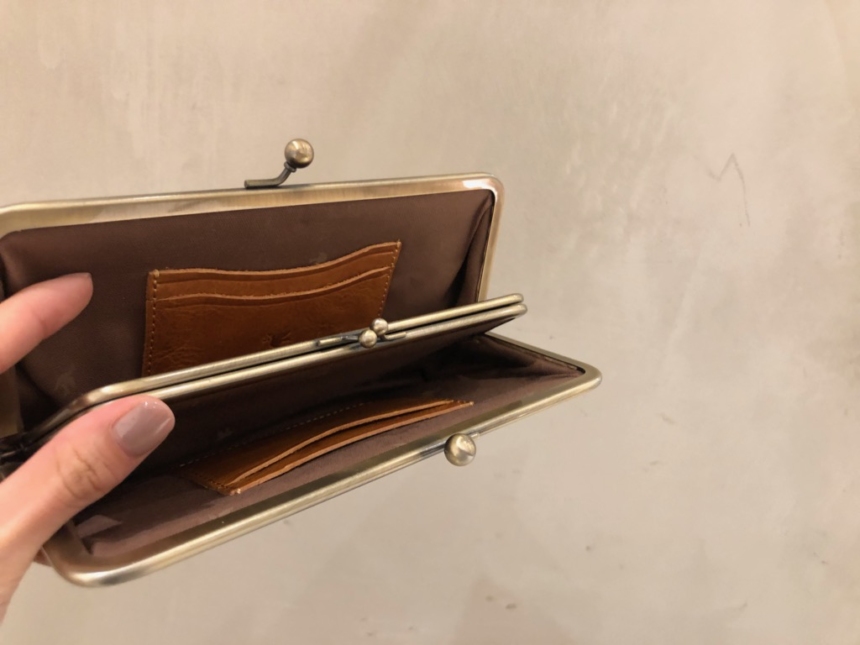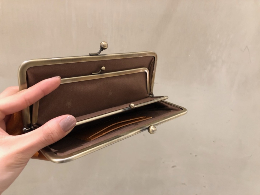 真ん中の口金があるおかげで小銭もきちんと分けて入れられるように作られています。