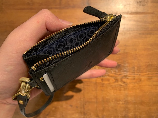 外側にはカードポケットが1つと、中央にはファスナー付きの小銭が15〜20枚ほど入るコインポケットが付いています。