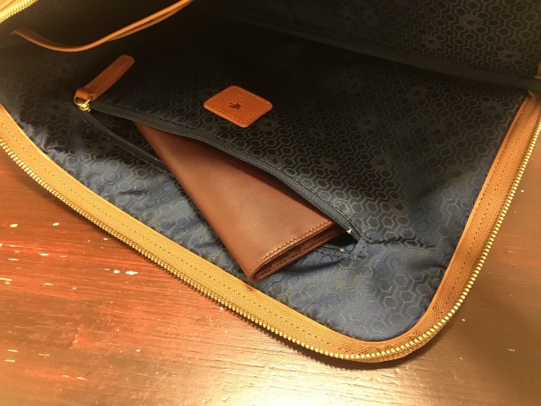 ファスナー付きのポケットには、貴重品などを入れておけるので安心です。