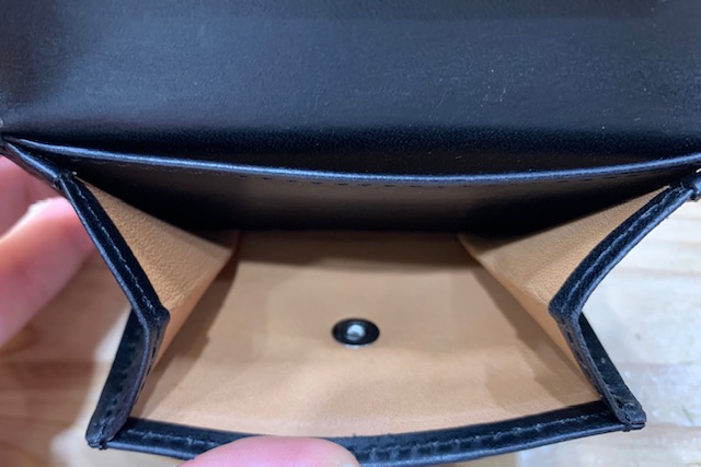 コインケースの色は3色展開で、裏地にはベージュの薄い革を使用しています。