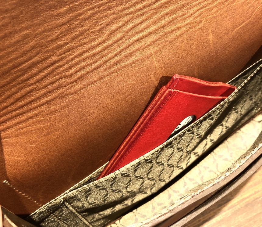 後ろに外ポケットも付いているのでパスカードなどすぐに出したいもの入れることも 。