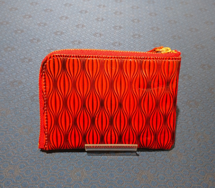 なめした革をプレス(アイロン)で加熱・加圧し、さまざまな型を押し付けた仕上げ。