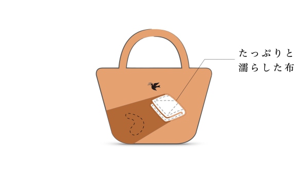 たっぷりと濡らした布で、革全体に一気に水を含ませてください。