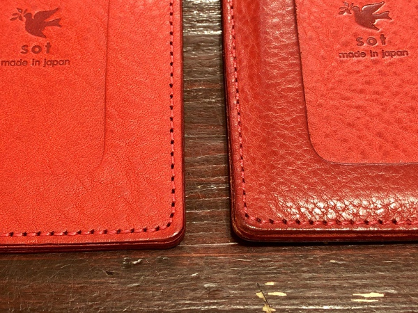 革の繊維によって一枚一枚現れ方が異なってきますので、そこが天然革所以の表情になります。