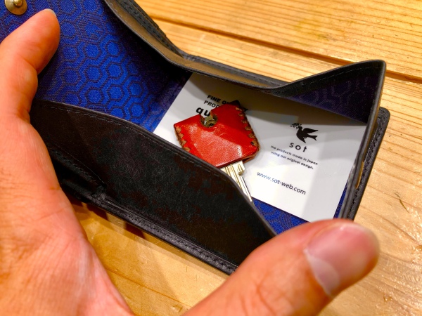 sotで扱っている二つ折り財布の中では三本指に入る収納力を持っており、カードポケットが8つ、フリーポケットが4つ、合わせて12枚分小分けできるポケットがあります。