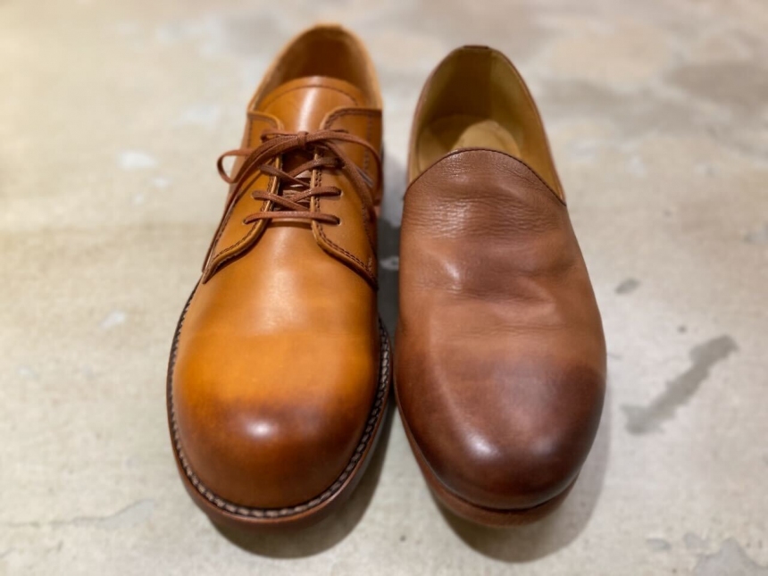 「滑りやすい」や「雨水が染み込む」事を理由にレザーソールを敬遠する人も少なくないですが、履きこむほどに自分の足型にフィットしていくので、本格的な革靴をお探しの方にはとてもオススメです!
