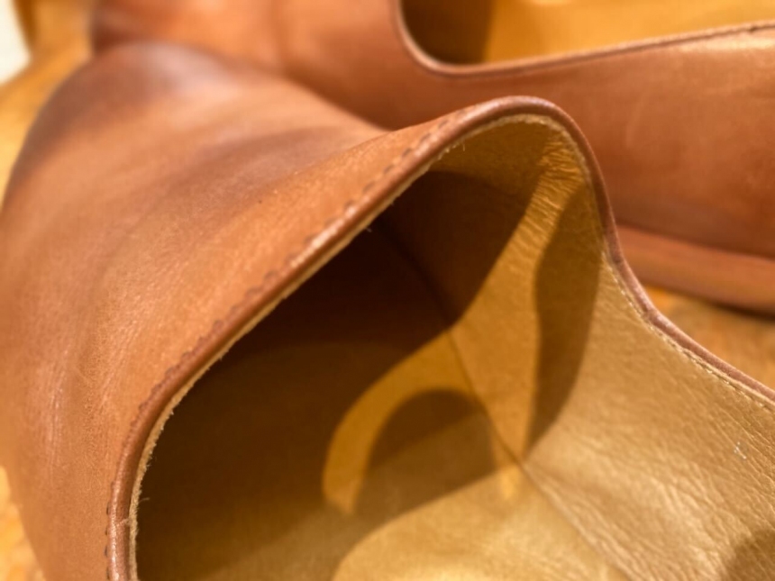 しかし、sotのレザースリッポンシューズのライニング(肌に接する面)はタンニン鞣しの牛革を使用しているので耐久性はもちろんのこと、吸湿性にも優れているんです!