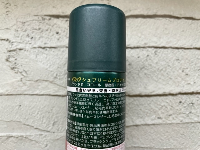 防水スプレーはかける事で防水効果、そしてクリームを塗ることが出来ない分このスプレーが栄養を与えてくれるので、より革を長持ちさせてくれます。