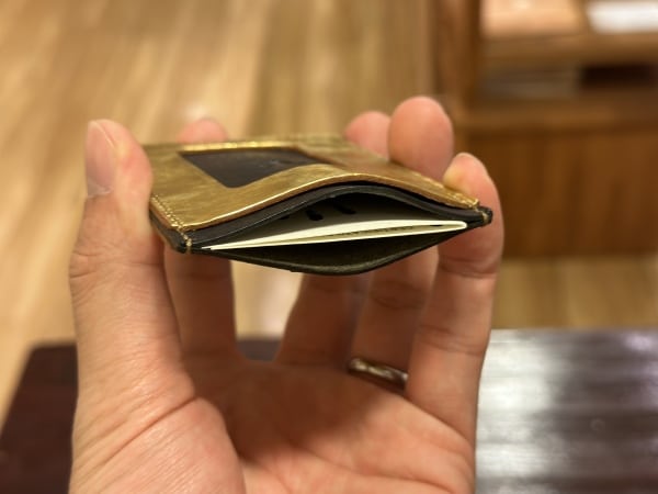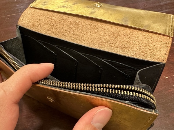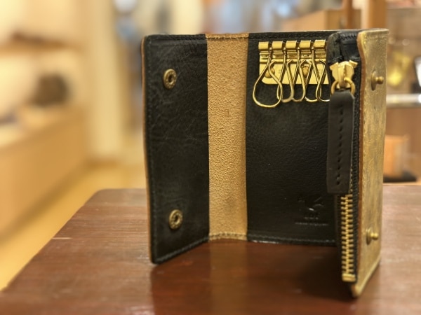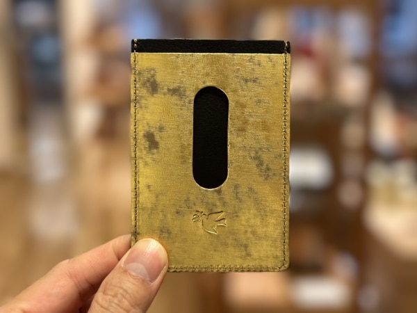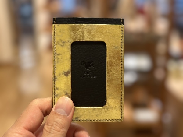 また、箔はそう簡単に削れるものではないので、残った金色の箔とヌメ革のコントラストの変化を見届けてほしいです。