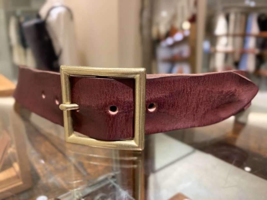 合わせものになりますが、芯を入れていないので適度なカジュアル感がありクラシックな真鍮のバックルともマッチしたベルトです。
