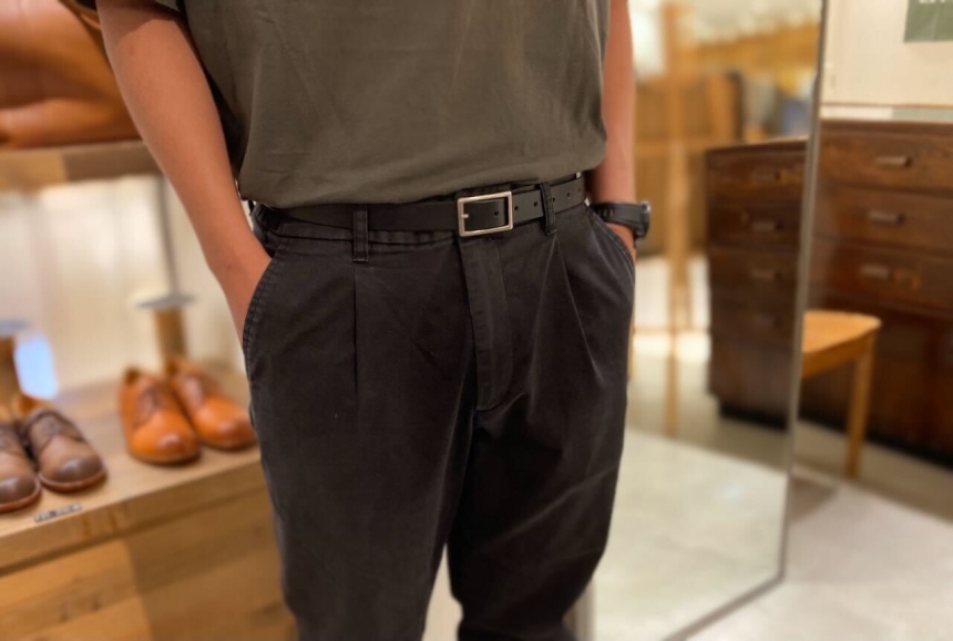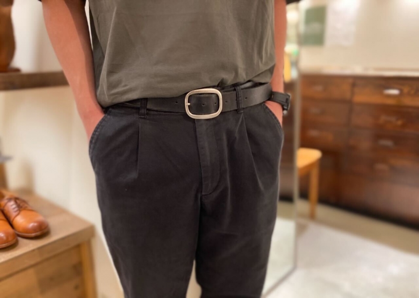35mm幅のためバックルは大きめですが、悪目立ちしないのでデニムにもスラックスにも相性抜群です。