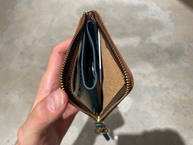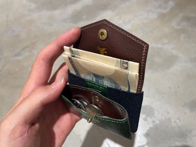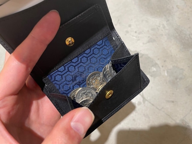 中の作りは小銭が10枚程入り紙幣を二つに折って入れる仕様です。