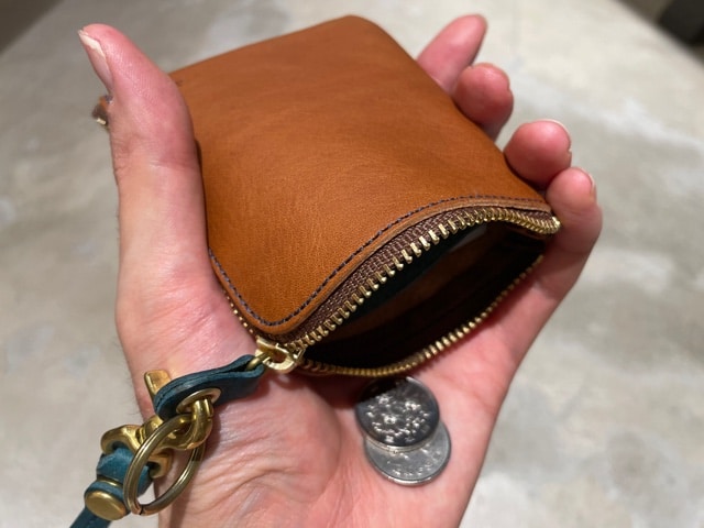 小銭を取り出すときはチャックを全部開けずに角まで開けると中身が飛び出さずスムーズに取り出すことが出来ます。