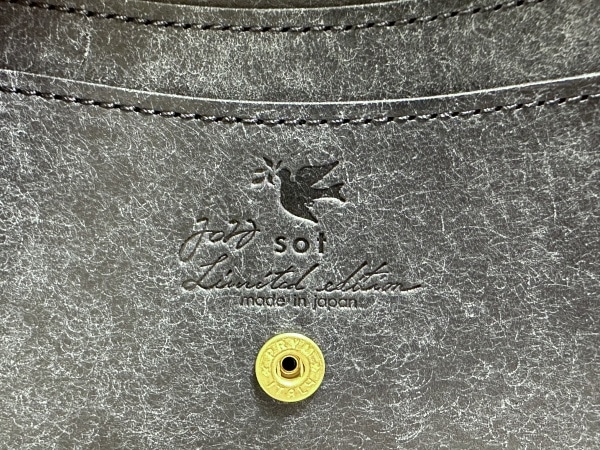 藍染革と対を成すのがsotの定番プエブロレザーで、藍染革と喧嘩しないようカラーはネイビーを採用しています。