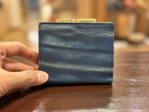 《2022年クリスマス限定》藍染レザー がま口 二つ折り財布
