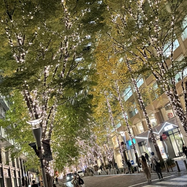 現在、東京駅界隈はクリスマスイルミネーションが煌びやかに輝いています。