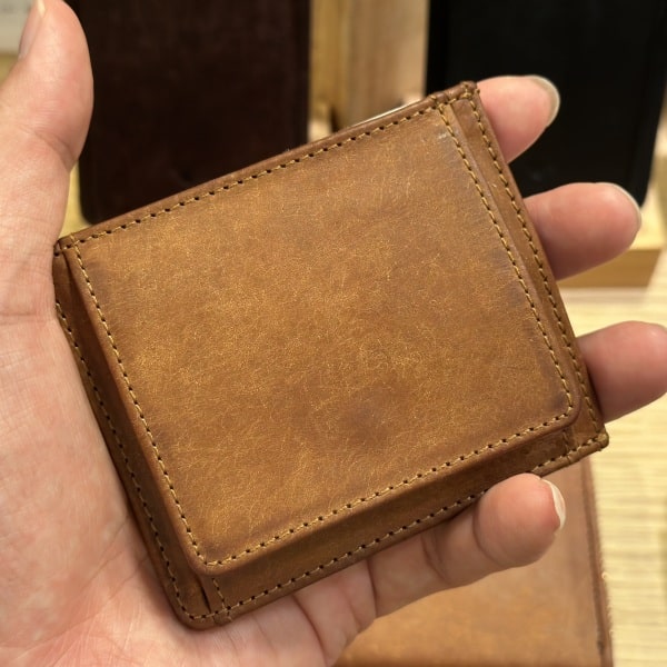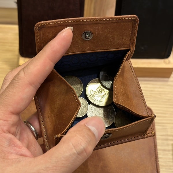 マネークリップにも近い機能性ですが、小銭入れも付いていることが最大のメリット。