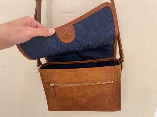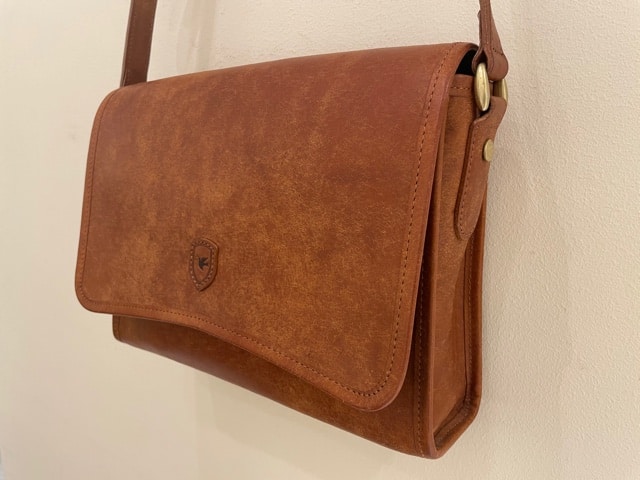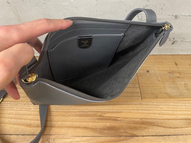 サコッシュのようなフラットな作りなので、厚手のアウターの下から掛けられる、非常にスマートなバックです。