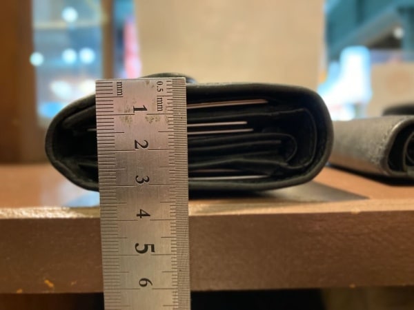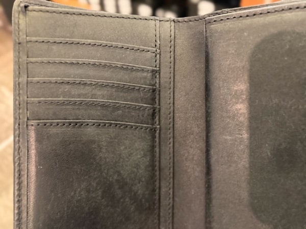 この点は良し悪しが人によって違いますが、私はむしろお財布が張る感じや革の厚みがたまらなく好みだったので気になりませんでした。