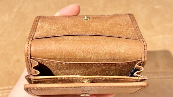 先程の製品と同様に、こちらもガバっと大きく開くので入っている小銭が全て見渡せ、出し入れがスムーズ。