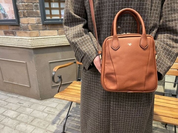正方形の形でコンパクトなサイズ感で、やや膨らみを持たせている事から可愛らしい印象のある鞄になっております♪