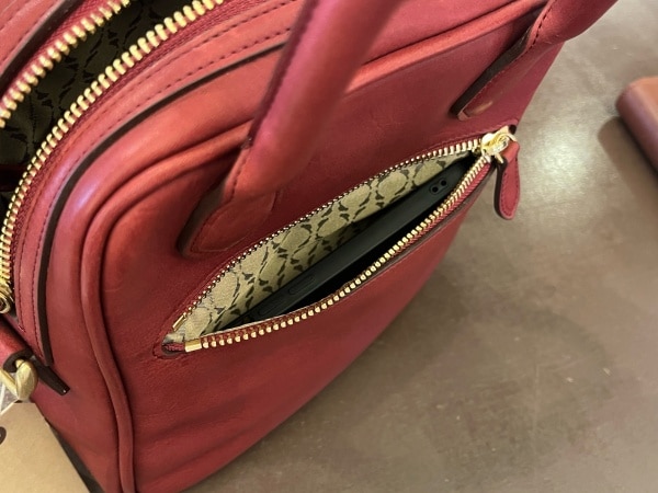 外側にもポケットが付いており、携帯が入る大きさで使用頻度が高い物も収納出来ます!