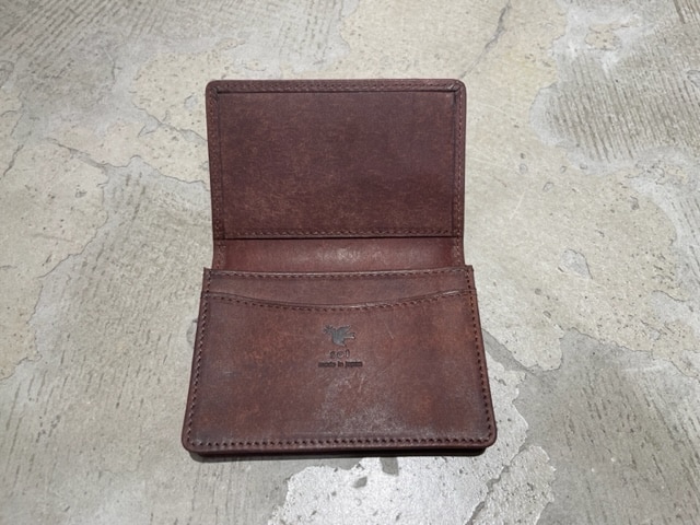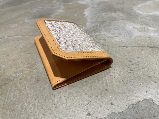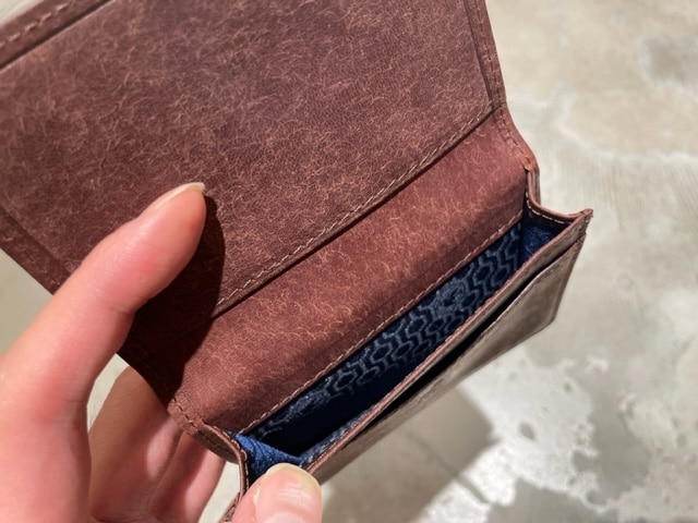 琥珀織とヌメ革を組み合わせた非常に珍しいカードケースです。