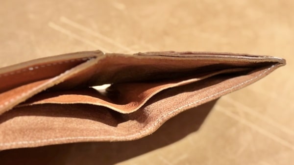 この二つ折り財布は、革製品の魅力を存分に体感できます。