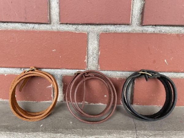 真鍮、シルバー、ゴールドなどありますが、その中でもレザーのブレスレットはとても合わせやすく、軽いのが特徴です!