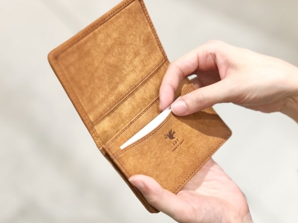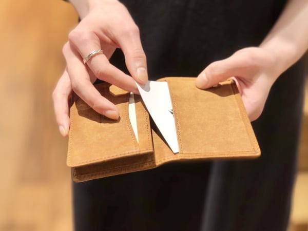 ここには受け取った名刺をスムーズに入れることができますし、SuicaやPASMOなどの交通系ICカードを入れて、パスケースとしても使うことができます。