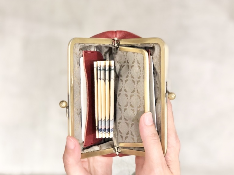 このがま口は、お財布としての使いやすさを考えて、2部屋構造を採用しています。