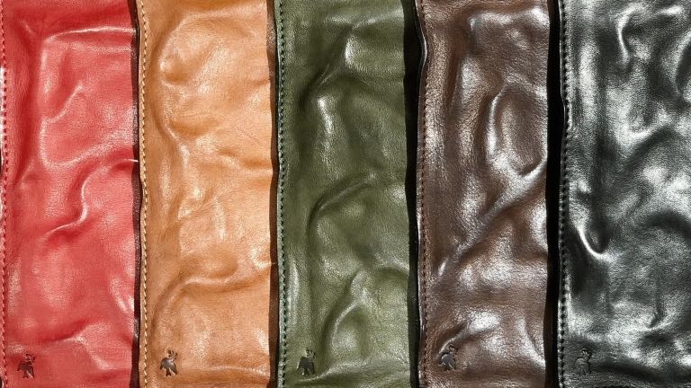 染める際には、天然の風合いと手触りを活かすために染料を使い、革を芯まで深く染め上げているのもこだわり。