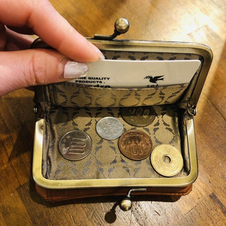 がま口部分はコインだけでなくカードも入れられるので、よく使うカードなどを入れても〇。