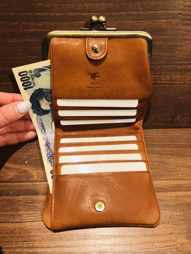 通常のがま口はお札を二つ折にして入れる必要がありますが、こちらは折る手間無く入れられるのも魅力。
