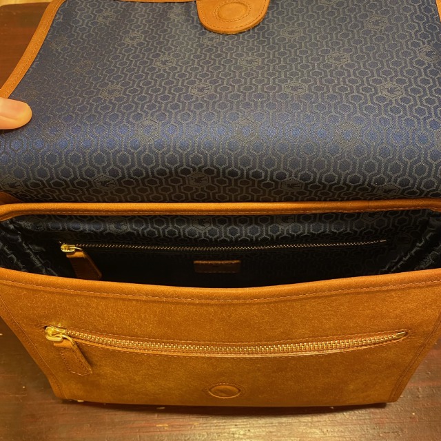 フラップを開いた本体正面にファスナーポケットがひとつと、内側にはファスナーポケットがひとつ、オープンポケットが2つあります。