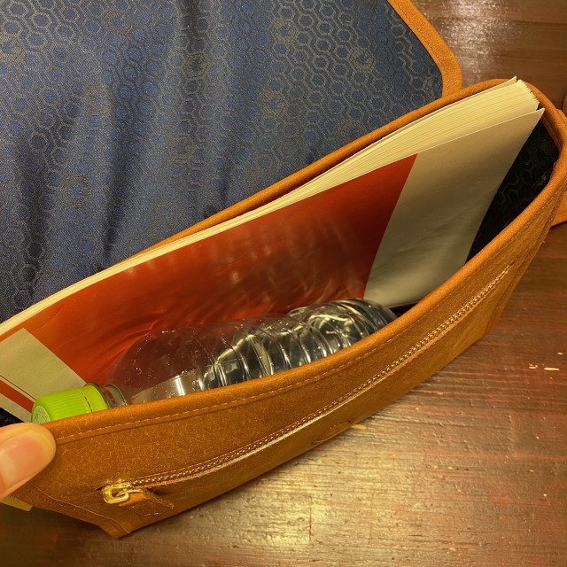 大きさはB5サイズで、厚みは500mlのペットポトルが入るサイズです。