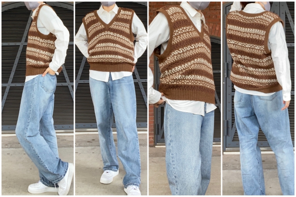 流行りのベストと合わせてレトロに。