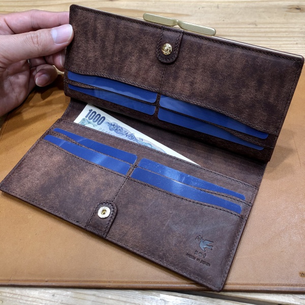 今までにはない新しいデザインのガマグチ長財布を是非お試しくださいませ。