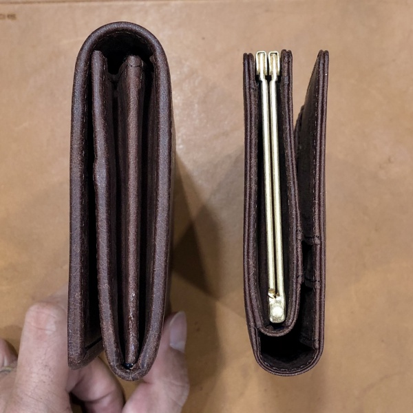 比べてみると、全体的にがま口のほうが小さく、厚みもスッキリしています。