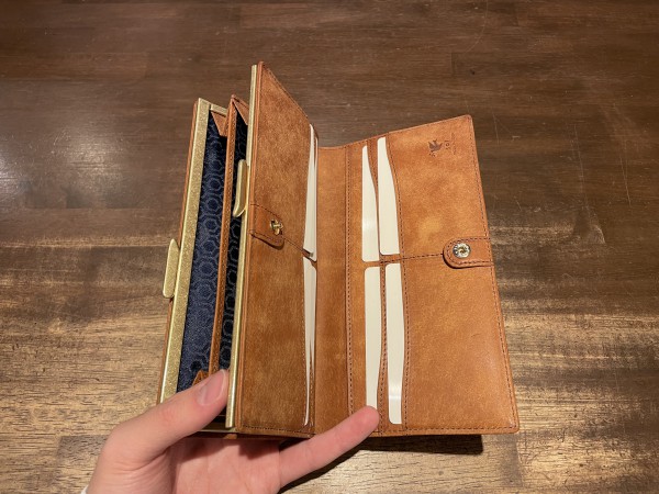 他の長財布と比べ少し珍しい見た目のお財布です!