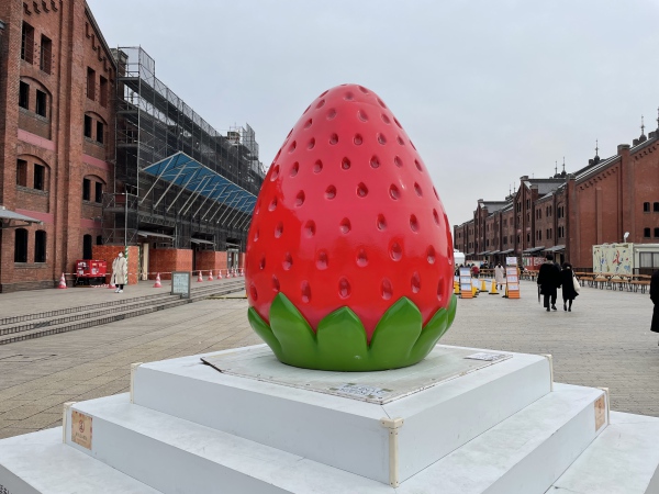 今年も、イチゴの大きなモニュメントが目印になっています。