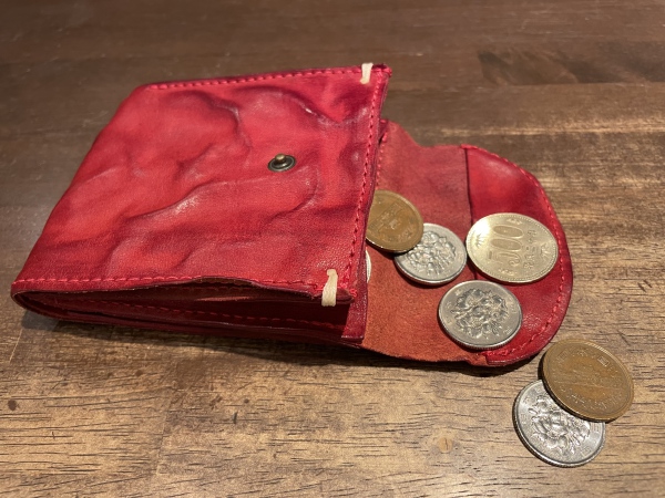 お札は2つに折ることでしまえるようになっていて、小銭入れは袋型になっています。