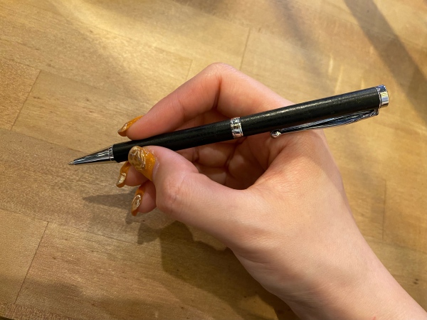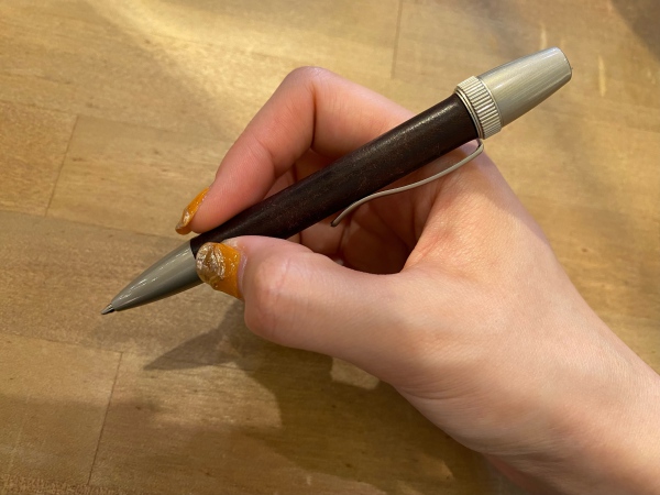 一般的なボールペンとは違い、本体を回すと芯が出てきます。