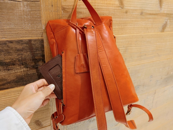 そして、レザー=重いイメージをお持ちの方がいらっしゃるかもしれませんが、極力金具を使用しない作りのため、重さはなんと500g。