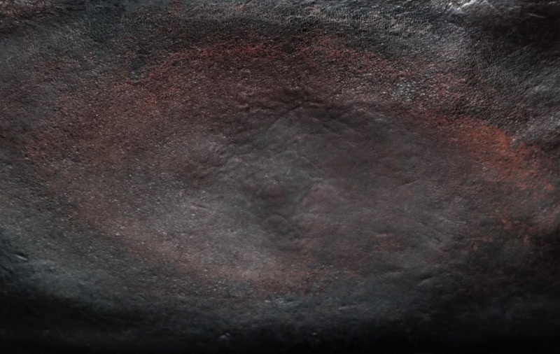 右下に行くにつれてひどくコゲた革