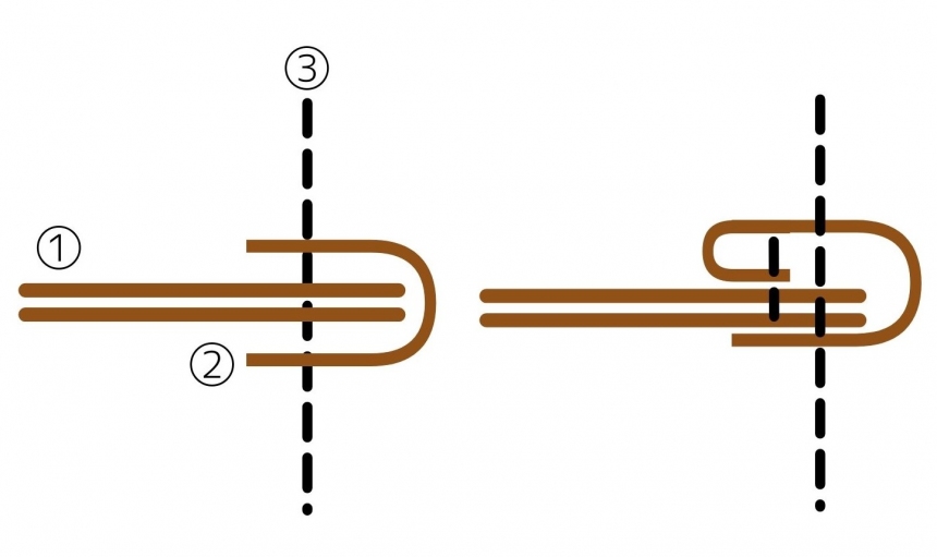一般的なパイピングと、プエブロレザーシリーズにみられるパイピングを断面図にして比較しましたので、ご覧ください。